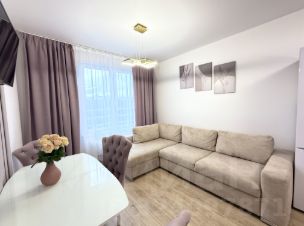 Квартира оборудована всей необходимой техникой: холодильник, посудомоечная машина, варочная панель, духовка, микроволновая печь, телевизор и стиральная машина. Есть вся необходимая мебель, огромное количество мест для хранения, поэтому можно сразу заезжать и наслаждаться уютом. В квартире есть лоджия, откуда открывается вид на лес.
