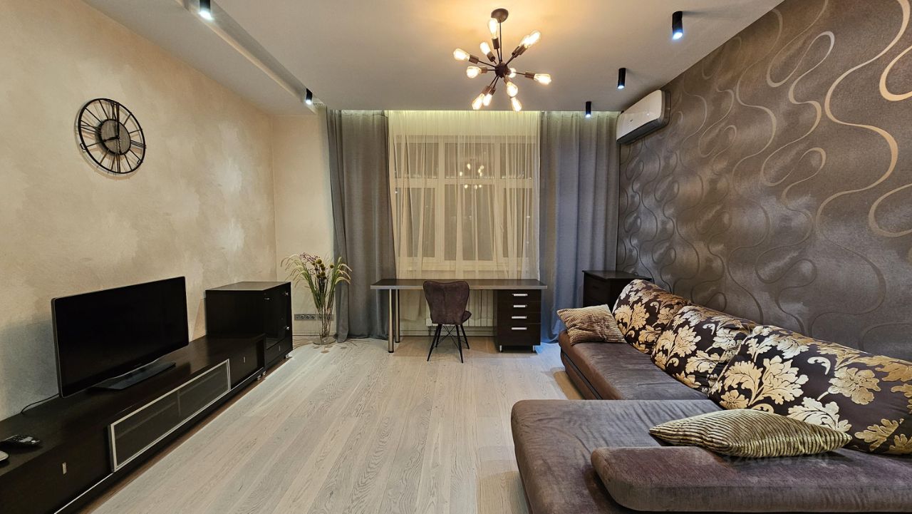 В квартире есть всё необходимое для комфортного проживания: кондиционер, холодильник, посудомоечная и стиральная машины, телевизор. На кухне установлена современная мебель. Ванная комната оборудована как душевой кабиной, так и ванной. Также имеется одна лоджия, где можно отдохнуть на свежем воздухе.
