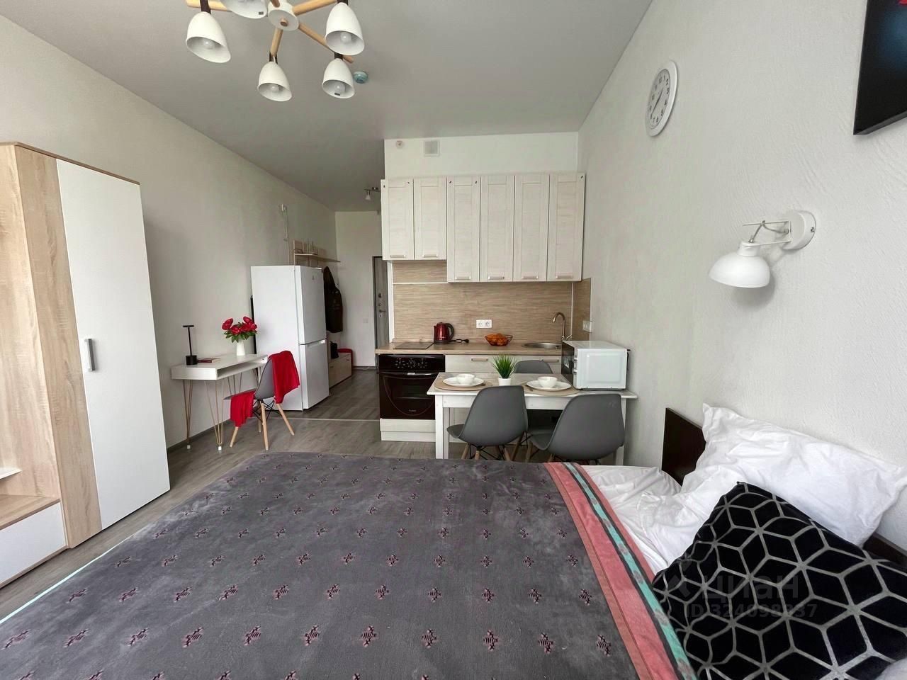 - полностью меблирована: кровать двуспальная, шкаф, стенка, удобное рабочее место, встроенная кухня