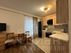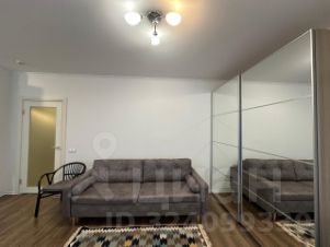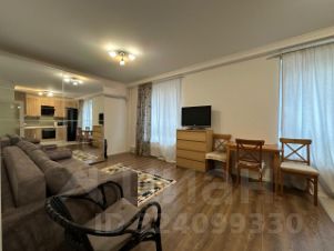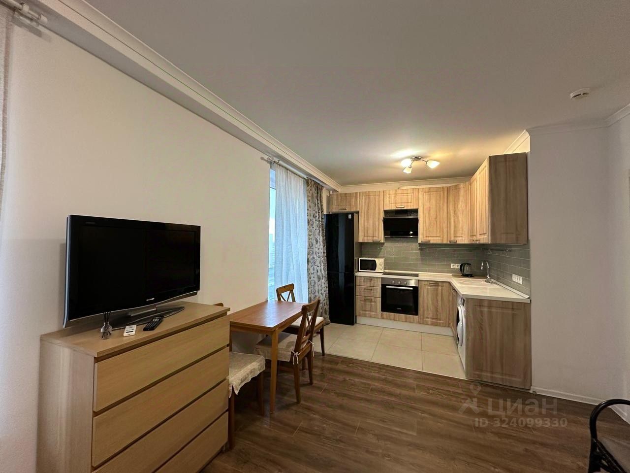 В квартире имеется кухонный гарнитур со встроенной техникой (фирма BOSCH), обеденная зона, спальное место, вместительный зеркальный шкаф-купе, комод, телевизор, кондиционер.