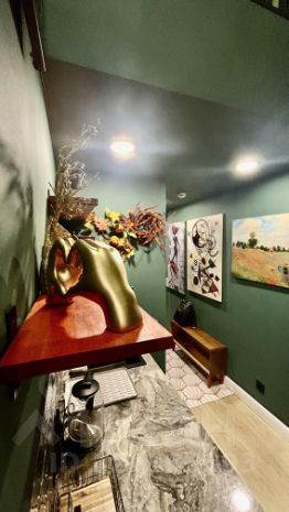 В распоряжении интегрированная кухня с premium-техникой (варочная панель, посудомоечная машина, микроволновая печь. холодильник) которая не нарушает целостность творческой атмосферы. Арт студия оснащена стиральной машинкой, а так же кондиционером. Бризером. Свежий воздух-составляющая комфорта!
