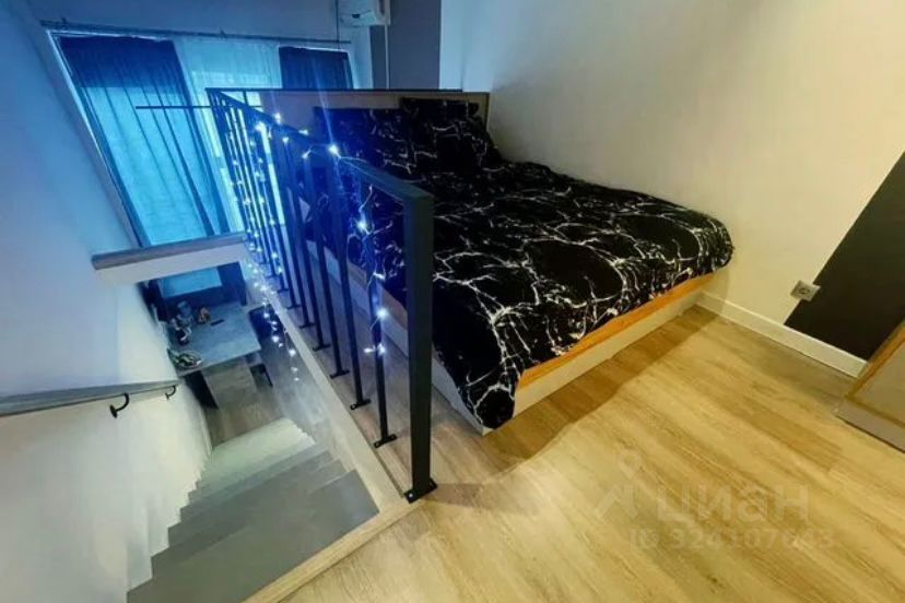 -Двухуровневая квартира расположена на 1 этаже, Высота потолков 5 метров. Панорамные окна. 1 этаж -кухня -гостиная. 2 этаж - спальня.