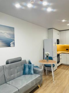 20 этаж, очень красивый вид из окна на город. Квартира сдаётся в первый раз - вся мебель и бытовая техника новые, подключён интернет.
