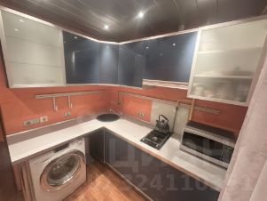 Встроенный кухонный гарнитур с газовой варочной панелью, свч, обеденная зона, стиральная машина. Духового шкафа нет.