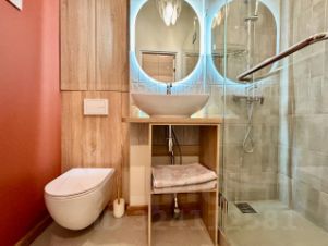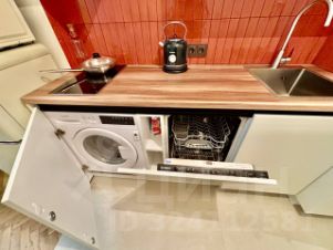 Есть встроенная стиральная машина с сушкой, посудомоечная машина, холодильник, микроволновая печь, кондиционер. По выбору арендатора купим телевизор или проектор (кому что нравится). Вся мебель и техника новая, кухня сделана на заказ и оснащена всем необходимым.