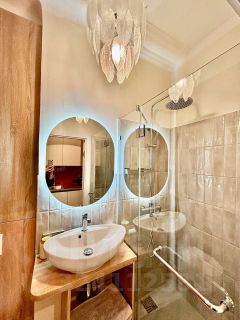 Преимущества - сталинский номенклатурный дом, потолок - 3 метра, отреставрированный паркет и лепнина, очень атмосферная. Классное расположение - в самом центре, до метро 10 минут пешком, пешая доступность до Тверской, Патриарших, зоопарка и т.д.. До Сити можно доехать на автобусе или машине за 15 минут. Также можно оформить резидентскую парковку.