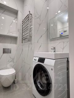 Современный санузел, облицованный светлым керамогранитом - с просторной ванной и тропическим душем, чтобы каждое ваше утро начиналось с удовольствия. Зеркало с зоной подогрева не запотевает, а новая стиральная машина делает уход за одеждой проще и удобнее.