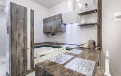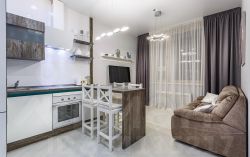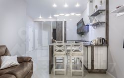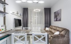 ОПИСАНИЕ: красивая квартира с новым современным ремонтом, в светлых тонах, со всей необходимой мебелью! Размещение до 3-ёх человек. Спальные места: Двуспальная кровать(180 на 200) с ортопедическим матрацем + комфортный раскладывающийся диван. Встроенная кухня, душевая, тропический душ.