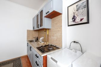 - Полноценная кухня (электроплита, холодильник, микроволновка, чайник)