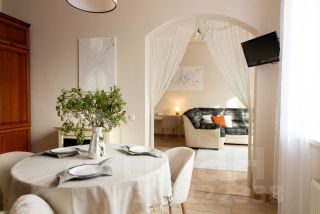 Высокие потолки и необычная планировка придают квартире ощущение простора и добавляют воздуха пространству.