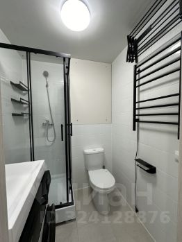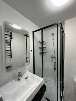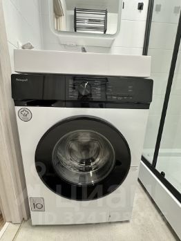 —Санузел совмещенный, установлена стиральная машина и раковина нового образца.