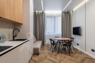 Современные апартаменты площадью 34 м² расположены в престижном комплексе ЖК Headliner, всего в 5 минутах ходьбы от метро Шелепиха и Москва-Сити.