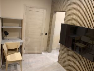 Лоджия, с выходом из комнаты, добавляет дополнительное пространство для отдыха. Интерьер выполнен в современном стиле в светлых тонах, что создаёт атмосферу уюта и комфорта. Комната разделена на две зоны: отдыха и рабочего пространства, что добавляет удобства для проживания семейной пары.