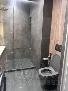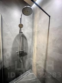 Просторный санузел с большой душевой кабиной в строительном исполнении. Премиальная сантехника.