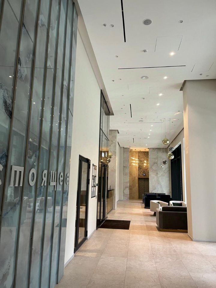 Общая площадь квартиры 42,9 м кв. Состоит из изолированной спальни 13 м кв., кухни-гостиной 16.5 м кв.. Все окна выходят во двор. Расположена на 5-ом этаже 13-этажной секции. 2 лифта (пассажирский и грузовой). Высота потолков 3 метра. В квартире выполнен качественный дизайнерский ремонт. Есть вся необходимая техника: индукционная плита, духовой шкаф, посудомоечная машина, микроволновая печь, холодильник, стиральная и сушильная машины, кондиционер и водонагреватель. На кухне установлены фильтры очистки воды, в мокрых зонах датчики протечек. Интернет, домофон подключены.