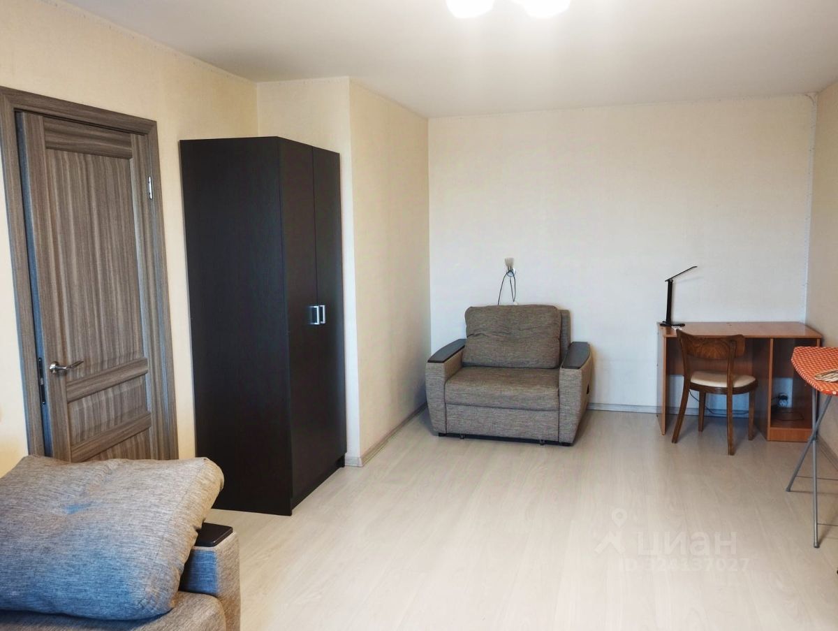 В просторной комнате необходимая мебель (раскладные двухспальный диван и кресло, модульная стенка со шкафом и полками для личных вещей, так же дополнительно есть двухстворчатый шкаф, письменный стол, стул, гладильная доска с утюгом, пылесос и небольшой телевизор). Из комнаты выход на застеклённую лоджию.