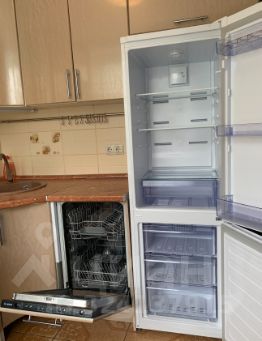 Квартира полностью готова к проживанию: есть кондиционер, холодильник, посудомоечная и стиральная машины. На кухне имеется вся необходимая мебель для комфортного проживания. В квартире один совмещенный санузел с ванной. Также есть балкон, где можно наслаждаться свежим воздухом.