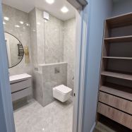 Квартира расположена в новом доме ЖК Мой адрес на Клинской. Дом построен по пилотному проекту Правительства Москвы Умный дом. В квартире выполнен современный ремонт, в котором учли эргономику и бытовые решения для того, чтобы прибывание в ней было комфортным. Квартира имеет просторную светлую коридорную зону с тёплым полом и отдельной полноценной гардеробной комнатой. Предусмотрены два полноценных санузла, один с просторной душевой кабиной, другой с ванной. Оба санузла оборудованы системой "тёплый пол". Один из санузлов расположен в мастер-спальне (15 м, БЕЗ учёта гардеробной и ванной комнаты) с отдельной гардеробной и просторным санузлом с ванной. Второе самостоятельное просторное помещение - это комната, метражом в 11 метров можно использовать как детскую комнату, кабинет или вторую спальню - на ваше усмотрение. В квартире предусмотрена большая кухня-гостиная. Ее метраж почти в 19м позволяет объединить в себе разные задачи для большой семьи. Помимо всей необходимой НОВОЙ встроенной техники в кухне, а именно: холодильника, полноценной большой плиты, вытяжки, духовки, микровалновки ( преимущественно все Bosch), имеется кондиционерная система. В санузле установлены стиральная и сушильная машины. Так же везде установлена система от протечек Нептун. Квартира тихая, светлая, теплая. Следует отметить, что окна всех помещений выходят в тихий двор. Территория ЖК построена по концепции "двор без машин", но предусмотрено достаточно мест для парковок гостевых авто. Территория закрыта шлагбаумом. Имеется подземный паркинг. Территория ЖК соседствует буквально в нескольких метрах с Грачёвским парком и усадьбой Грачёва. На первых этажах ЖК есть всё необходимое: магазины ( Пятерочка, Дикси, Строительные материалы, Аптека, Цветы и пр.). В здании имеется два выхода на первом этаже: во двор на детские площадки и в сторону фасадной части здания, что очень удобно. Рядом ЖК расположен большой новый фитнес-центр и м. Грачевская в 6 минутах ходьбы.