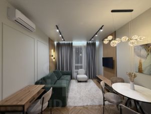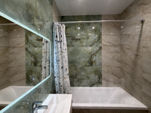 В квартире сделан дизайнерский ремонт, предусмотрена вся необходимая мебель как на кухне, так и в комнатах. Оснащена современной техникой: кондиционер, холодильник, посудомоечная и стиральная машины, телевизор. Санузел совмещенный с ванной, а из окон открывается вид на улицу. Также есть лоджия, где можно приятно провести время на свежем воздухе.