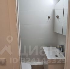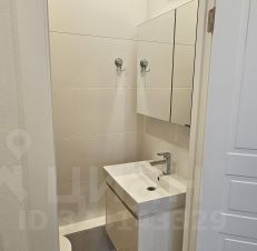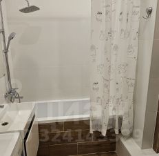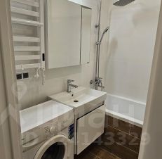 В санузле тёплые полы, стиральная машина, смеситель ванной оборудован тропическим душем.