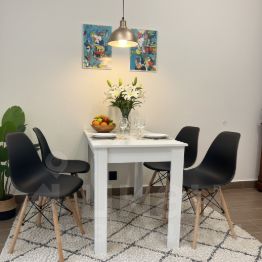 • Зона кухни: холодильник, микроволновая печь, чайник, варочная панель, комплект посуды для приготовления еды и сервировки на 3 персоны, бокалы и штопор.• Коридор: вместительный шкаф, утюг, гладильная доска и сушилка для белья, вешалка для одежды