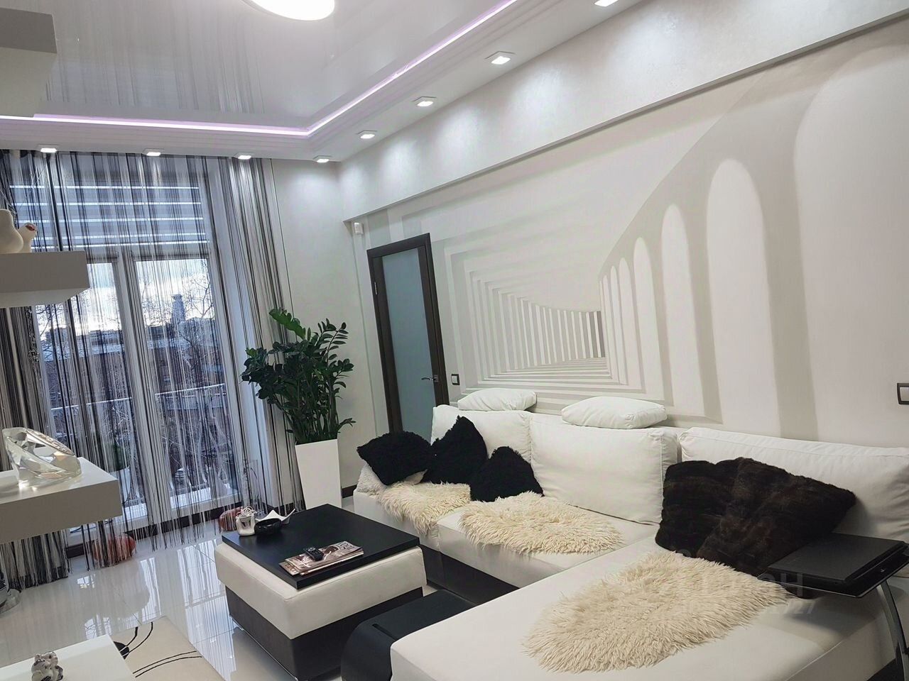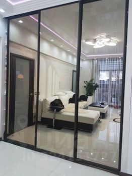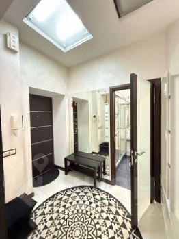 В квартире продуманы системы хранения, разноуровневое освещение, кондиционер, полностью меблирована и оборудована даже мелкой бытовой техникой и посудой.