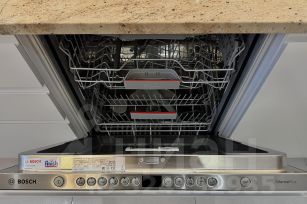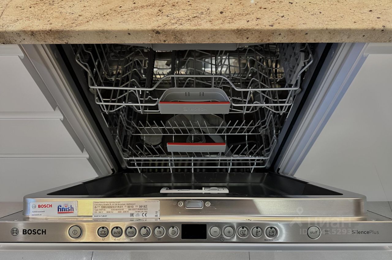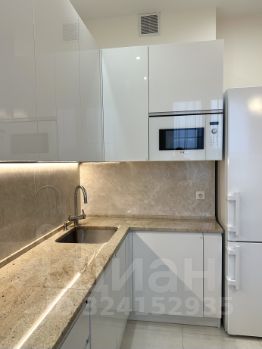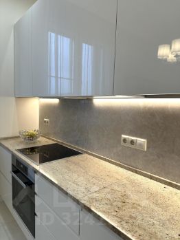 Просторная кухня около 14 м², полностью оснащенная встроенной техникой премиальных брендов Miele, Liebherr, Bosch, Electrolux.