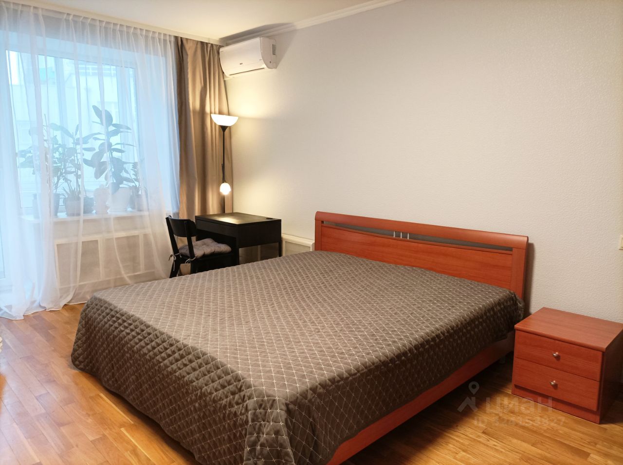 В вашем распоряжении просторная комната с застеклённым балконом. Встроенный шкаф, двуспальная кровать, письменный стол, комод, телевизор, кондиционер. Здесь созданы идеальные условия для комфортного проживания.
