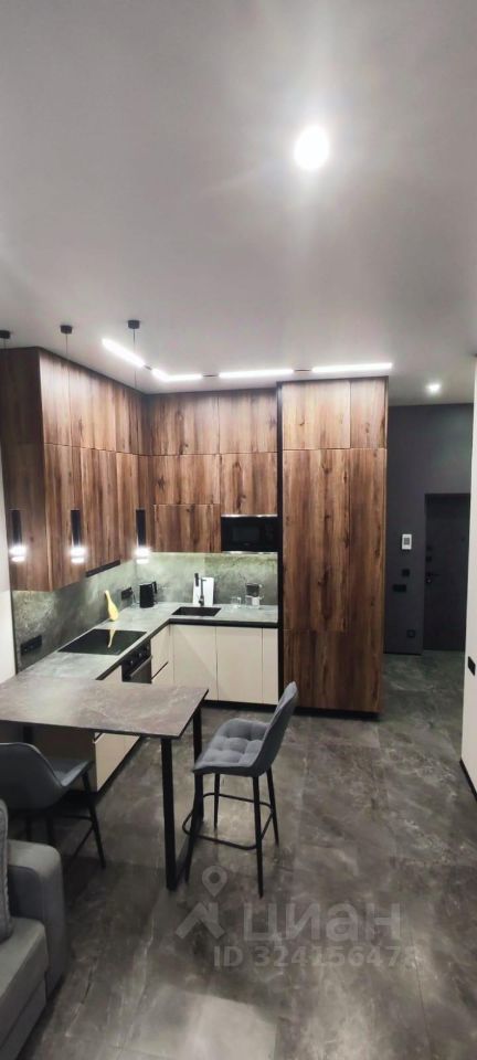 В квартире выполнен стильный дизайнерский ремонт, который создаёт атмосферу уюта и комфорта. Здесь есть вся необходимая встроенная мебель как в комнате, так и на кухне, в гостиной у окна располагается большой рабочий стол. В спальне - удобная двухметровая двуспальная кровать.