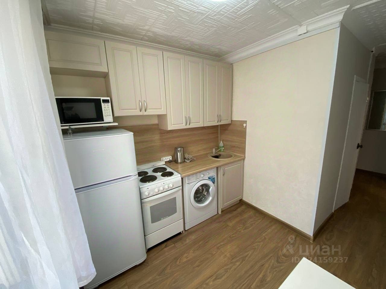 В комнате и на кухне есть необходимая мебель, а также вся необходимая техника: холодильник, телевизор и стиральная машина. Санузел совмещенный и оборудован ванной. Окна квартиры выходят во двор, что обеспечивает тишину и комфорт.