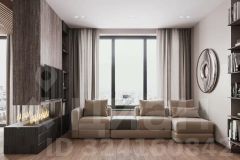 • Просторная гостиная с панорамными окнами и зоной отдыха