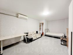 Есть всё необходимое для жизни: стиральная машинка, микроволновая печь, холодильник, чайник. В комнате есть кровать, диван, большой шкаф для хранения вещей, установлен кондиционер. На кухне большая застекленная лоджия.
