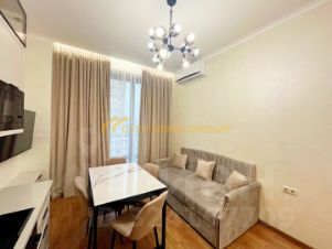 -В ремонте использовались премиальные материалы. Квартира распашонка, в кухонной зоне установлен современный кухонный гарнитур со встроенной посудомоечной машиной Korting, варочная панель Korting, духовой шкаф Korting, микроволновкой Korting, кондиционеры все новое и свежее, никто не пользовался.