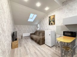 Впервые сдается светлая, уютная студия с отличным ремонтом в Москве деревня Марьино по ул Жемчужная дом 1 корпус 14, в новом ЖК Марьино Град. Студия расположена на 5 этаже 5 этажного монолитно-кирпичного дома, мансардного типа. Функциональная и комфортная планировка, общей площадью 20кв. В комнате встроенный кухонный гарнитур с бытовой техникой (электрическая плита, холодильник, микроволновая печь, электрочайник), барная стойка со стульями, стиральная машинка, двуспальный раскладной диван, тумба под телевизор, телевизором. Совмещённый санузел, отделан ПВХ панелями под мраморную плитку, просторная душевая. В квартире выполнен качественный ремонт в серых тонах: установлены стеклопакеты, на разно уровневом потолке- точечные светильники, на полу в комнате -ламинат, в санузле плитка, входная железная антивандальная дверь. Просторный тамбур на 4 квартиры с металлической дверью. Чистая входная группа подъезда с грузовым лифтом. Зеленый обустроенный двор с детской и спортивной площадками, много наземных парковочных мест. Развитая инфраструктура района. В пешей доступности школы, детские сады, магазины, салоны красоты, мед клиники, рестораны. На территории ЖК набережная с шезлонгами, местами для барбекю. Недалеко два лесопарка с зонами отдыха. Хорошая транспортная доступность. Около дома остановка общественного транспорта, до метро Филатов луг 15 минут транспортом. Удобный выезд на МКАД по Калужскому или Киевскому шоссе. Арендная плата плюс счетчики. Сдается на длительный срок. Без животных. Страховой депозит 100%, комиссия агента 100%.