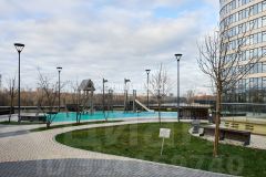 Огороженная охраняемая благоустроенная территория. Собственная набережная с яхт-клубом. Подземный и наземный паркинги. Двор без машин. Развитая инфраструктура. В стилобате и на первых этажах расположены магазины, кофейни, рестораны, аптеки, фитнес-центр. Хорошая транспортная доступность.
