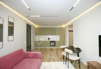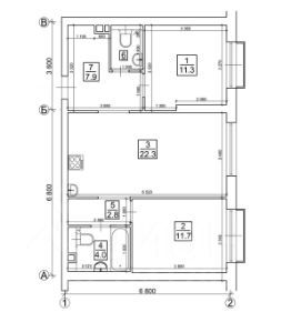 Кухня-гостиная 22.3 кв. м. Изолированные спальня - спальня (кабинет). 2 санузла. Всё абсолютно новое,объект сдаётся впервые.