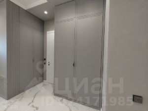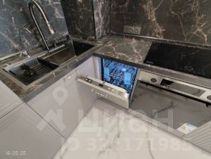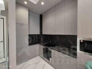 В прихожей установлены 2 вместительных шкафа. Кухонный гарнитур имеет большое количество отсеков для хранения, полностью оборудован всей необходимой техникой, включая посудомоечную машину, варочную панель, духовой шкаф, микроволновую печь и современную мойку с несколькими режимами подачи воды. Обеденный гарнитур состоит из стола и четырёх мягких стульев. Дополнительно установлен винный шкаф. Для посуды и других предметов интерьера предусмотрен стеклянный стеллаж с подсветкой. Гостиная зона обустроена мягким гарнитуром и стенкой с телевизором.