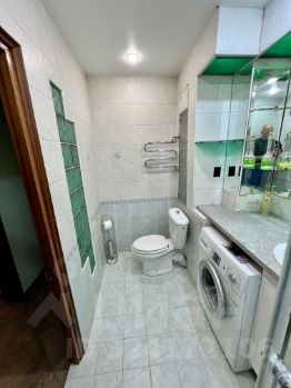 В квартире дизайнерский ремонт, что делает ее особенно привлекательной. Обстановка включает мебель на кухне и в комнате, а также полный комплект современной техники: кондиционер, холодильник, посудомоечная машина, телевизор и стиральная машина. Санузел совмещенный, оборудован душевой кабиной. Два балкона с окнами, выходящими как на улицу, так и во двор, добавляют дополнительный комфорт и уют.