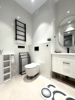 Внутри квартиры все продумано до мелочей. Свежий евро Ремонт, в интерьере использованы современные и качественные материалы. В комнате и на кухне есть вся необходимая мебель. Квартира оснащена современной техникой: кондиционер, холодильник, посудомоечная и стиральная машины, телевизор. В ванной комнате установлена ванна для вашего комфорта.
