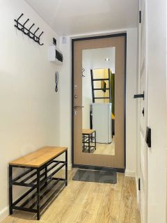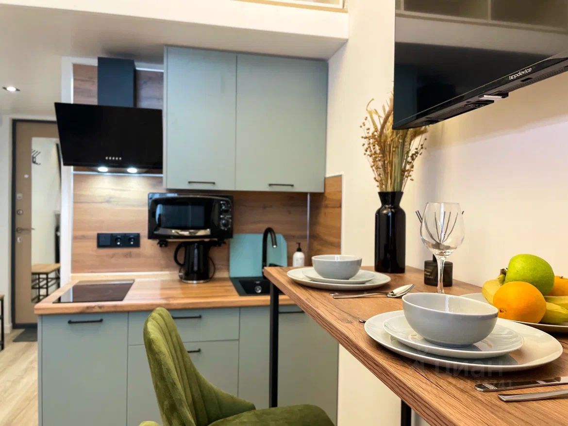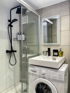 В студии есть все для комфортного проживания - телевизор, микроволновка, стиральная машина, оборудованная кухня с посудой, есть постельное белье, полотенца, фен для волос - заезжай и живи, ничего докупать не придется.