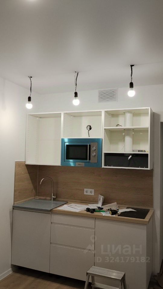 Вашему вниманию предлагается уютная новая студия со свежим ремонтом. На фото нет, но в ближайшие пару дней будет установлена душевая и завершится сборка мебели. В наличии всё необходимое (на фото микроволновая печь в плёнке (новая), кухонный гарнитур, стиральная машина, холодильник, спальное место и места хранения. Так в ближайшее время будут установлены светильники, повешены шторы и Вы заедите в уютную новую квартиру!