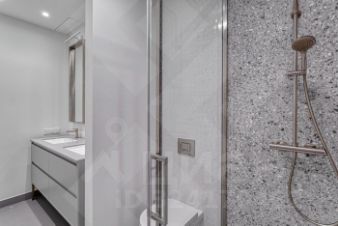 Санузлы облицованы керамогранитом и бетонной плиткой Терраццо. Сантехника марки Villeroy&Boch.
