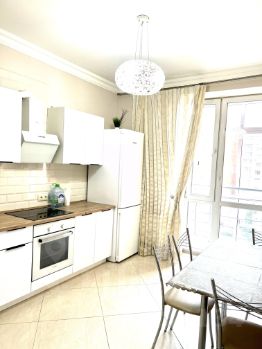 Стены окрашены в тёплых светлых тонах, пол ламинат, на кухне пол плитка, санузлы в плитке. Лоджия с панорамным остеклением. На кухне окна в пол, выходят во двор с великолепной детской площадкой. Кухня 12 м, комнаты 19 и 13 м, имеется кладовка 2.5 м. В 2 минутах пешком Липовый парк, 5 минут пешком лес.