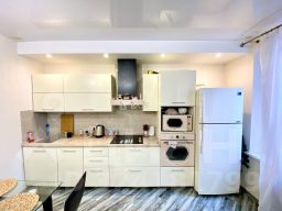 Холодильник Samsung, стиральная машина Indesit, посудомоечная Siemens, СВЧ Gorenje, 2 новых телевизора, бойлер. В каждой из комнат зеркальный шкаф-купе. На полу в кухне-гостиной керамогранит, а вся ванная комната отделана плиткой.
