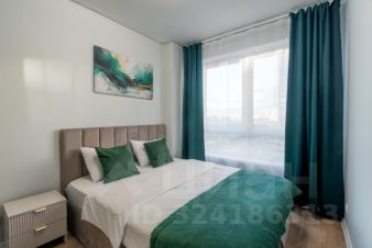 В апартаментах есть отдельная спальня с двуспальной кроватью и удобной системой хранения. В гостиной расположен большой угловой раскладной диван, который может служить дополнительным спальным местом. Пространство светлое, с большими окнами и приятной современной отделкой.