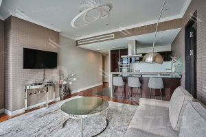 Находясь на 15 этаже, вы сможете наслаждаться захватывающими панорамными видами на столицу. Просторная гостиная совмещена с кухней, что создает идеальную атмосферу для отдыха и общения. Просторная спальня с кроватью king-size гарантирует максимальный комфорт для вашего сна, а гардеробная комната обеспечит удобство в организации ваших вещей.