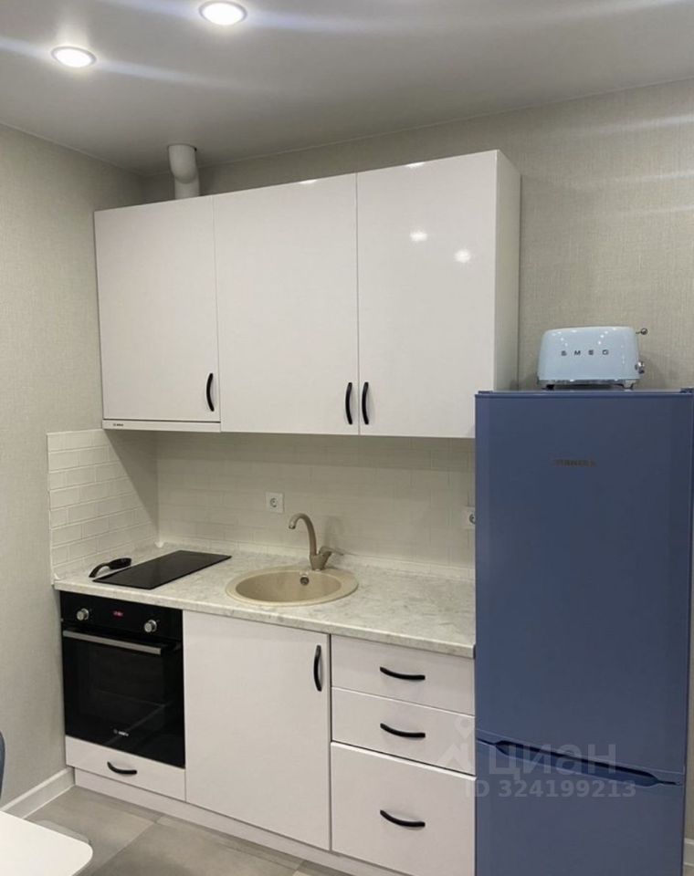 Квартира полностью обставлена мебелью и оснащена необходимой техникой. На кухне есть всё для комфортного приготовления пищи, включая холодильник, а в комнате — мебель для отдыха и хранения вещей. В ванной комнате установлена современная душевая кабина. В квартире проведён интернет, поэтому можно оставаться на связи и работать удалённо.