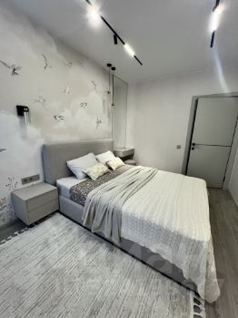 В квартире все продумано для комфортного проживания: разнообразная подсветка зон, электрокарнизы, домофон, wi-fi, чайник, фильтр для питьевой воды барьер и даже утюг. Восхитительный вид на город.