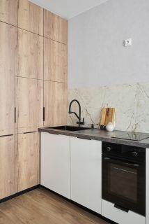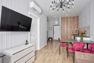 В квартире есть вся необходимая мебель и техника (включая кондиционер, встроенный холодильник, стиральную и посудомоечную машину, смарт-ТВ). Достаточно мест для хранения.