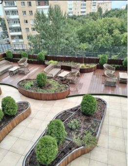 Вид из окон во двор. Терраса, веранда лаундж. На фото наш вид из окна.